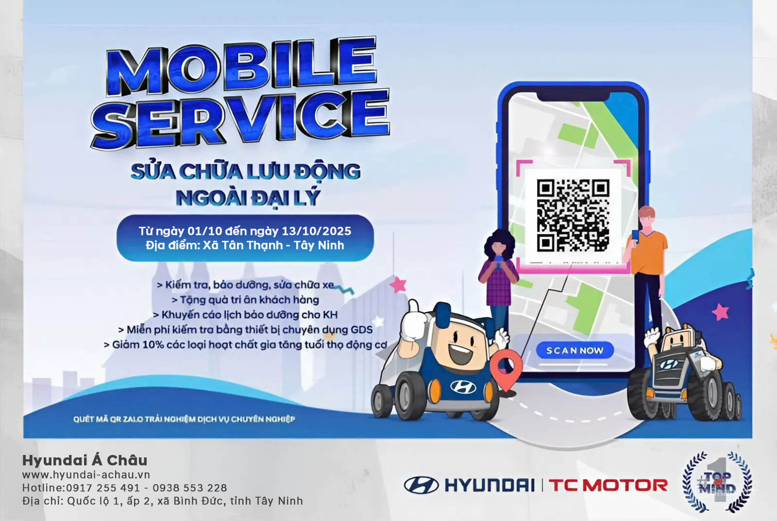 Hyundai Á Châu mang đến dịch vụ Sửa Chữa Lưu Động tận nơi, giúp bạn tiết kiệm thời gian và công sức! ![]()